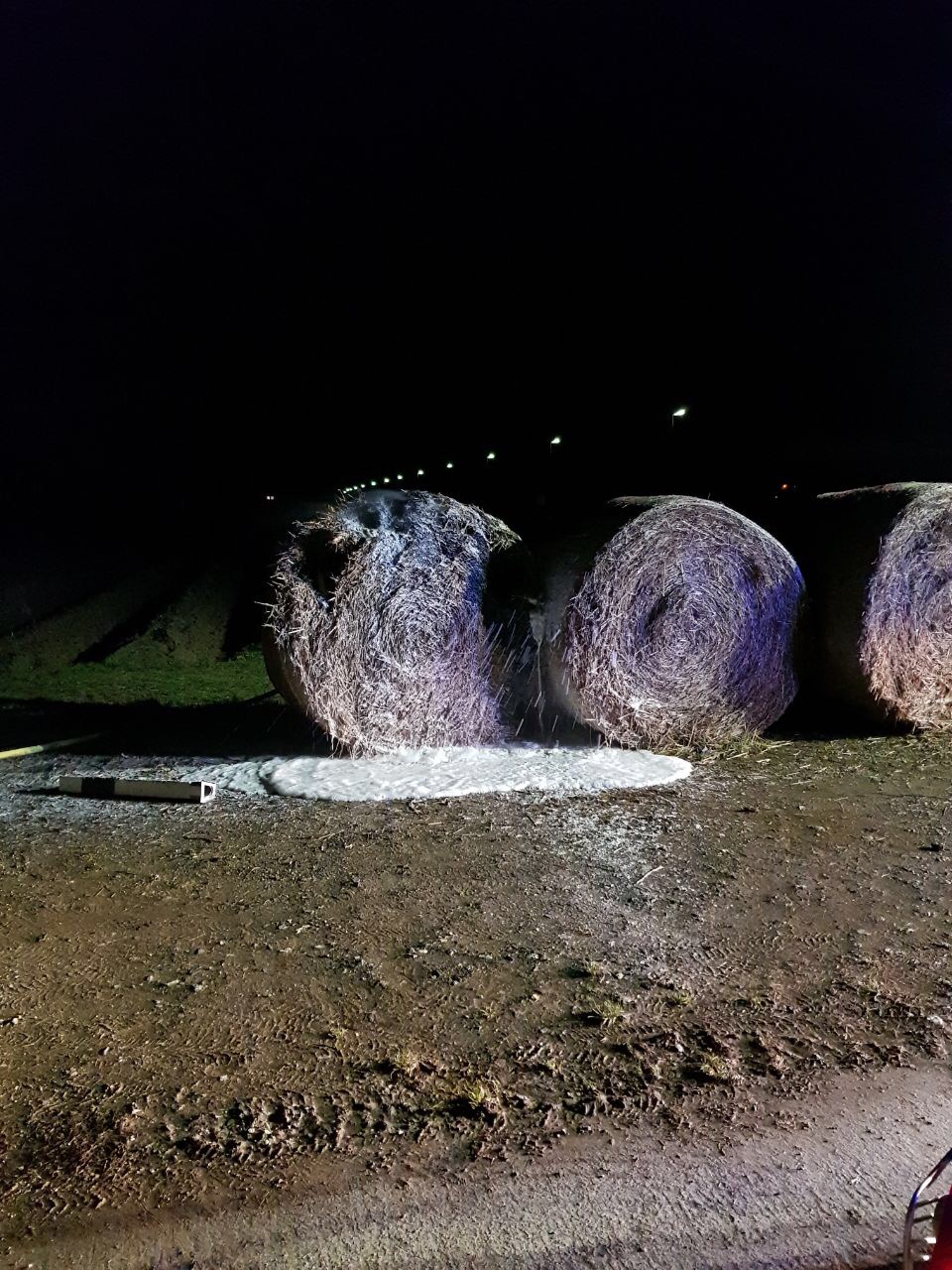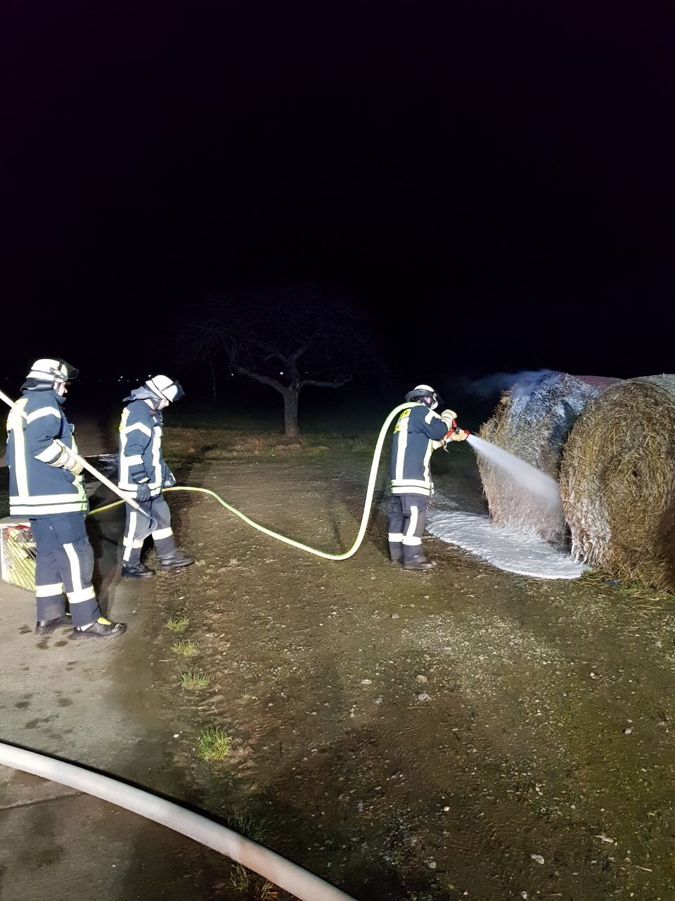 Der Ballen wurde auseinander gezogen und abgelöscht. Der Einsatz war gut 45 Minuten später beendet.