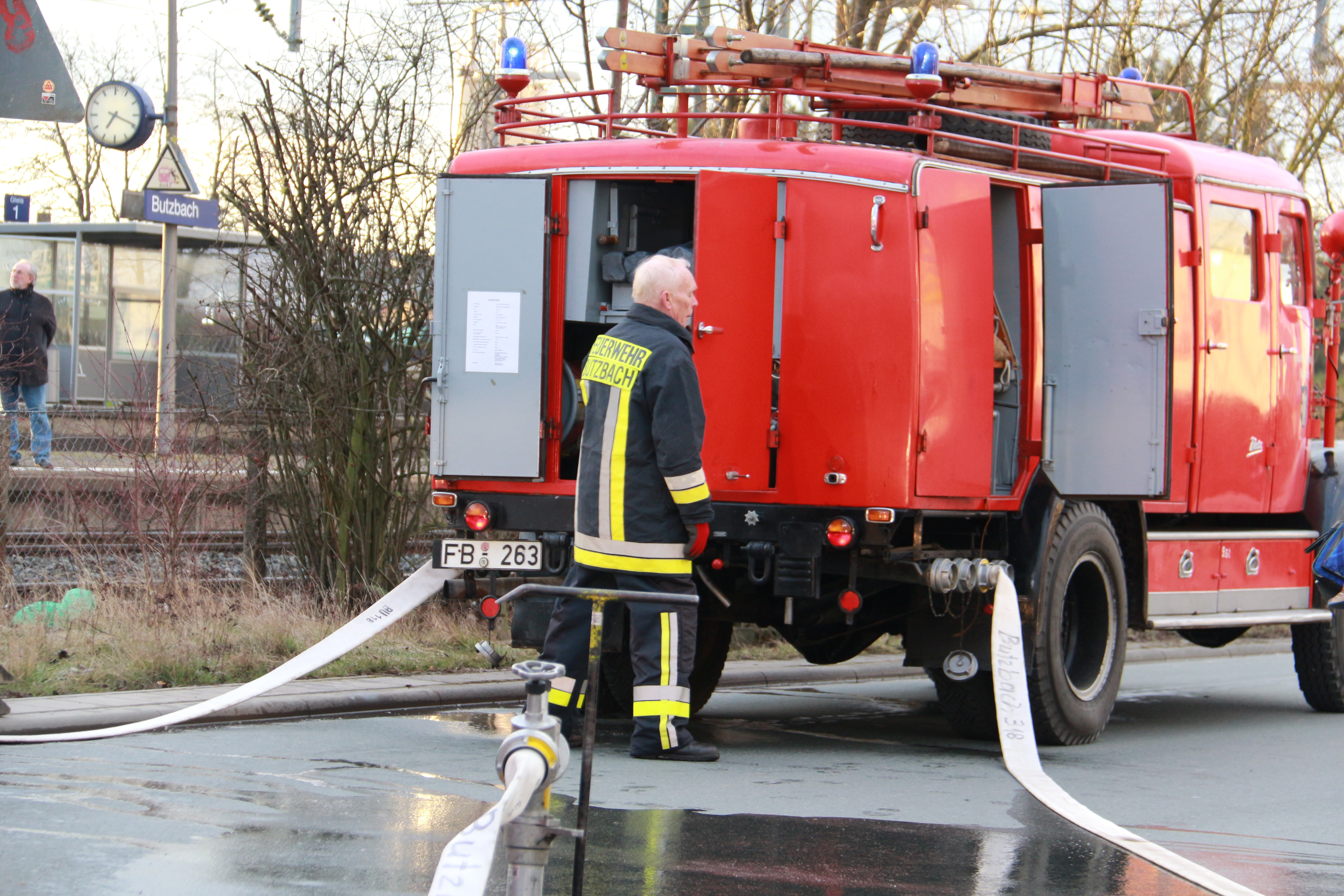Nach rund 7 Minuten war der Wassertank der Lok und der Wasserkessel gefüllt und die Brandschützer konnte die Wasserversorgung zurückbauen.