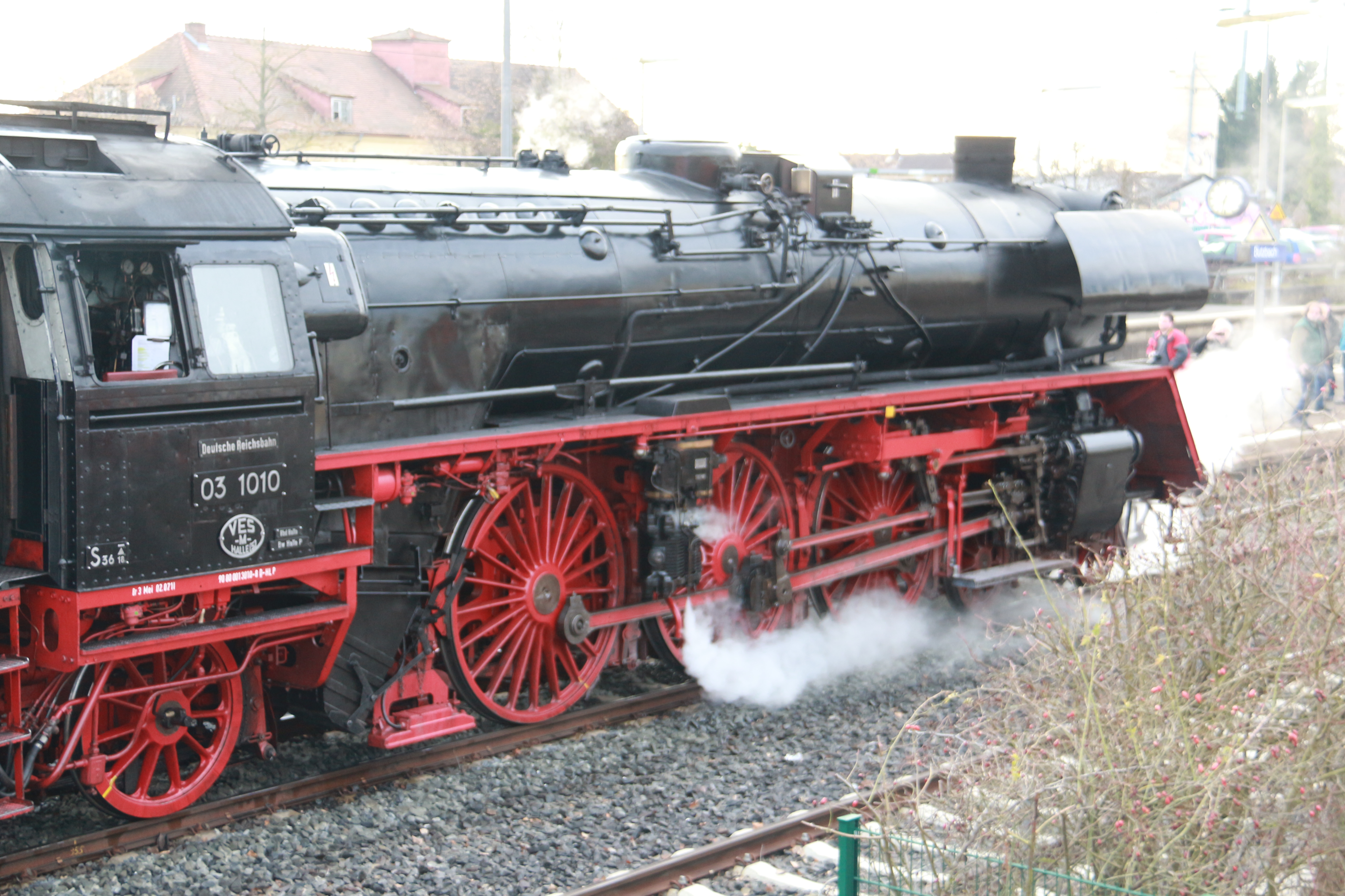 So präsentierte sich am vergangenen Samstagfrüh die Dampflok „03 1010“, welche aus Treysa kommend in Butzbach einen Zwischenhalt machte. Zum einen stiegen Passagiere zu, die den Tag nach einer Fahrt im nostalgischen Zug nutzten, um zur Modellbahnmesse nach Sinsheim zu fahren. Zum anderen auch, um den Wasserspeicher der Dampflok aufzufüllen.