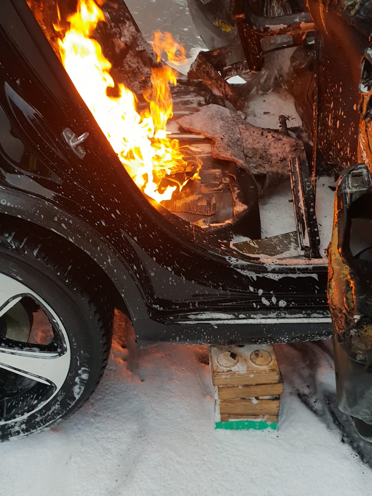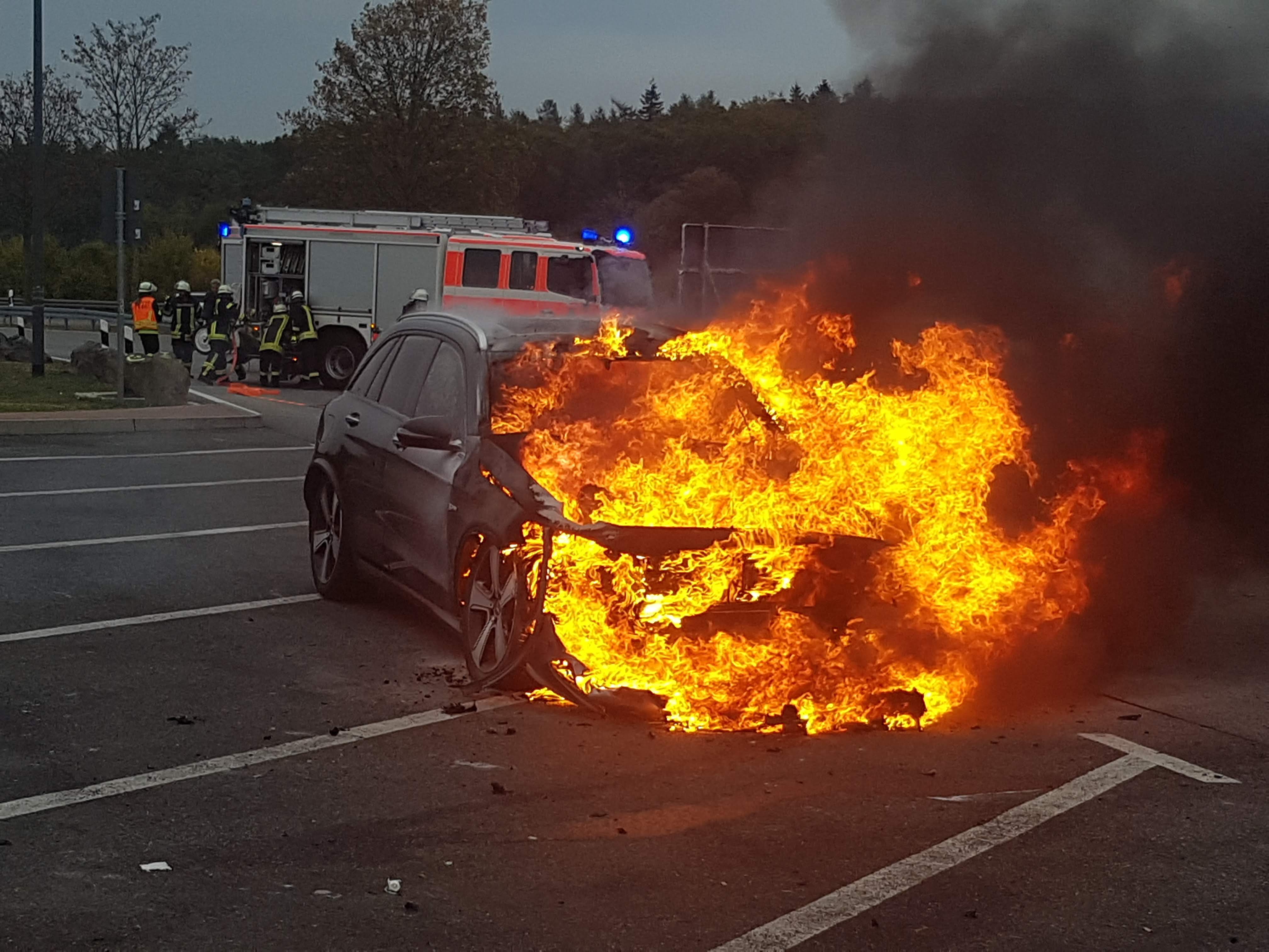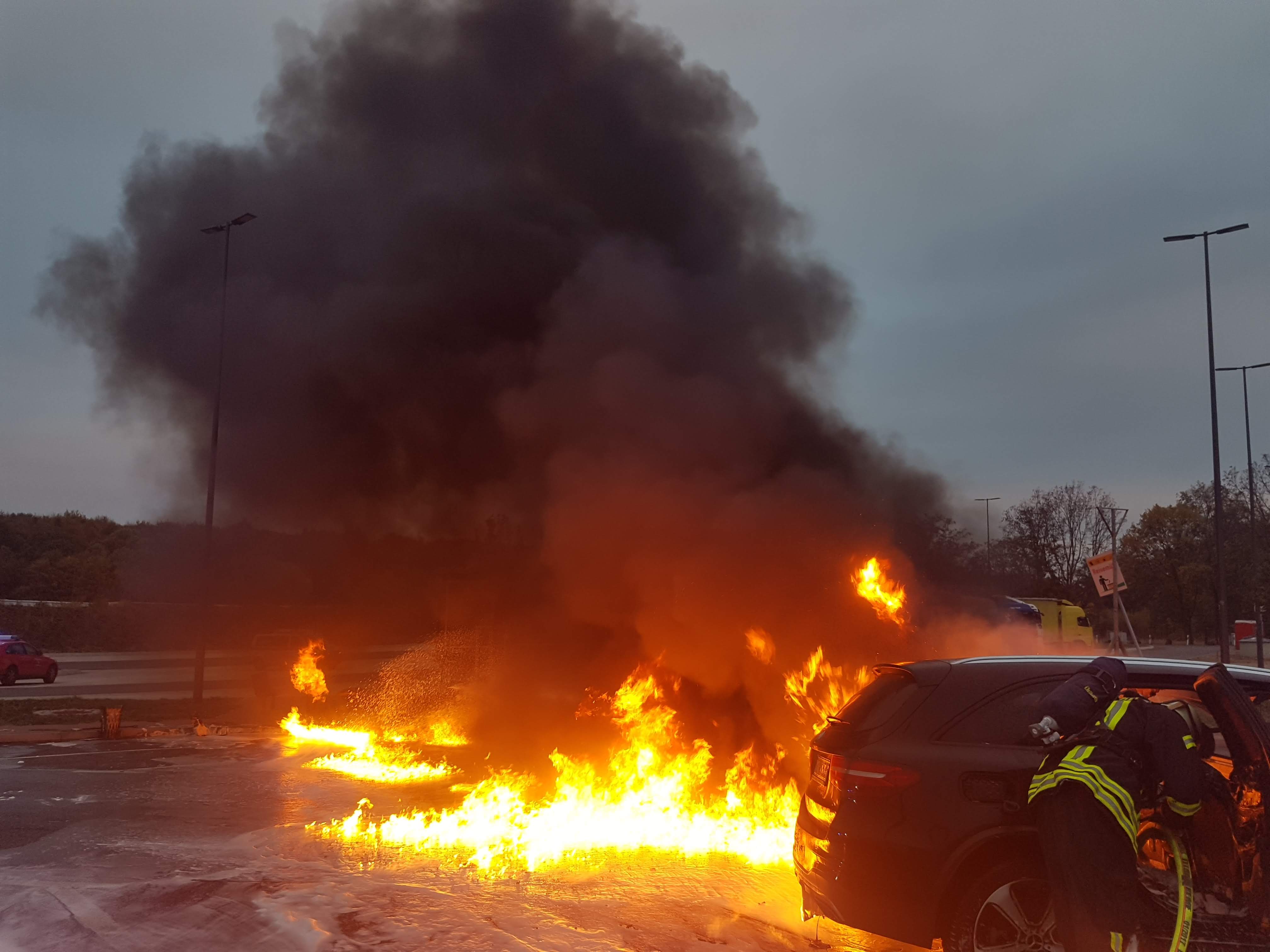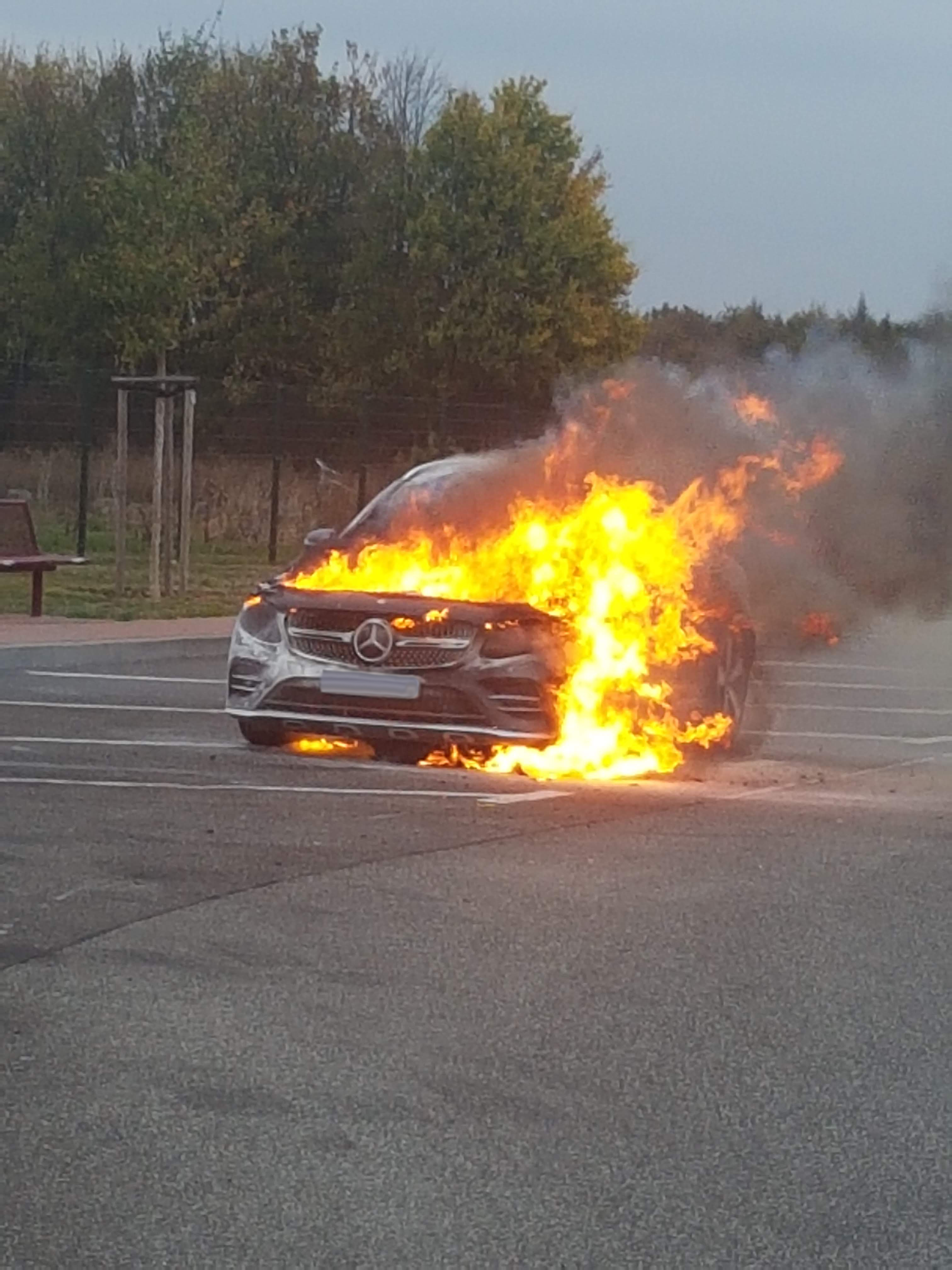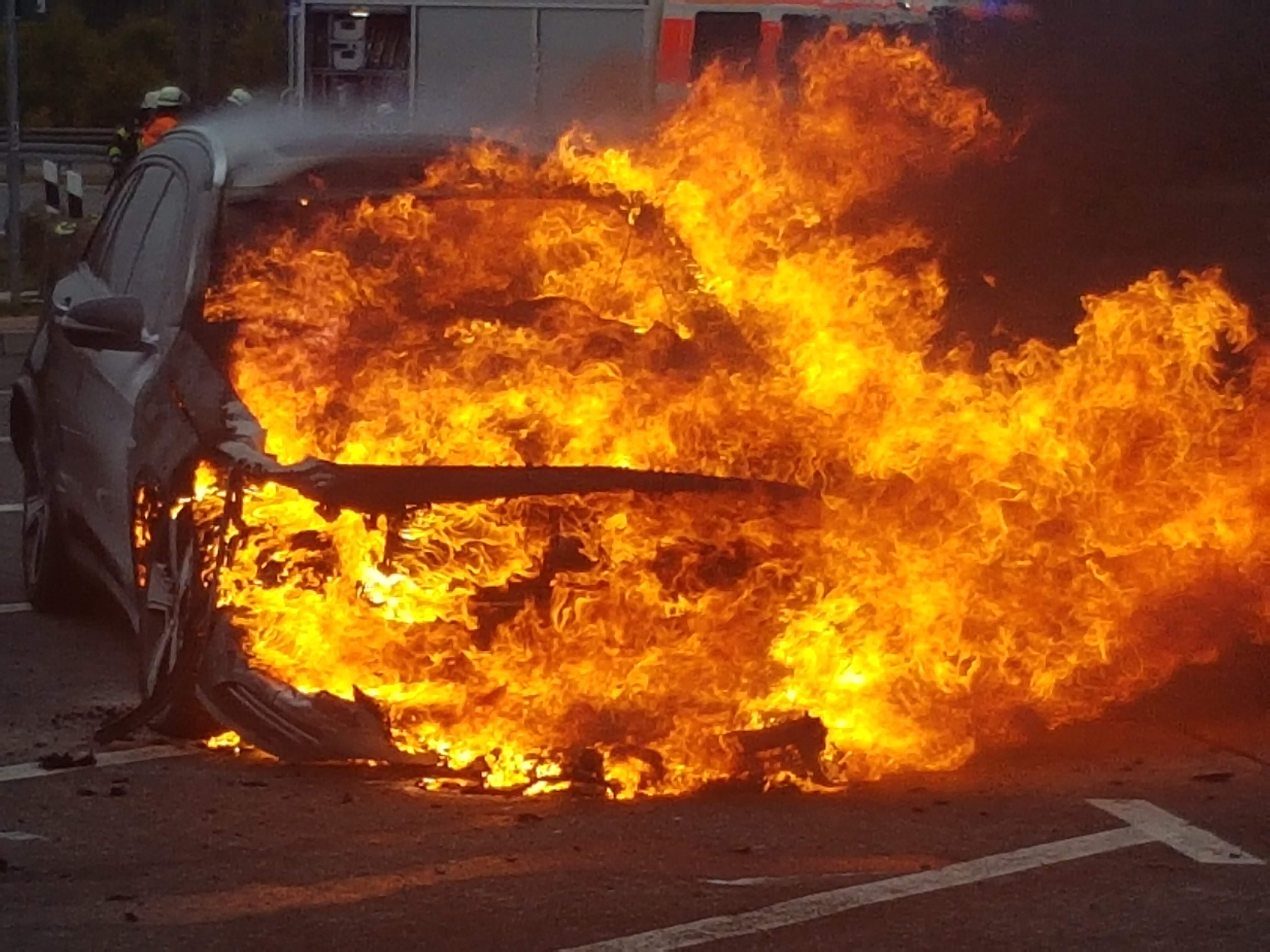 Aus ungeklärter Ursache fing am Donnerstag Nachmittag ein PKW Feuer.
