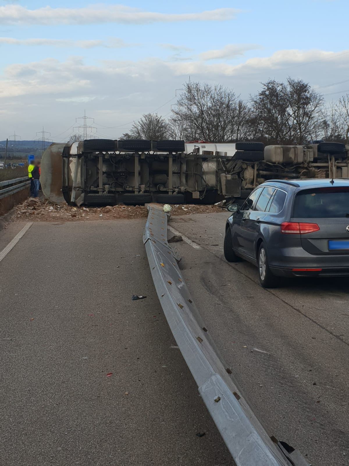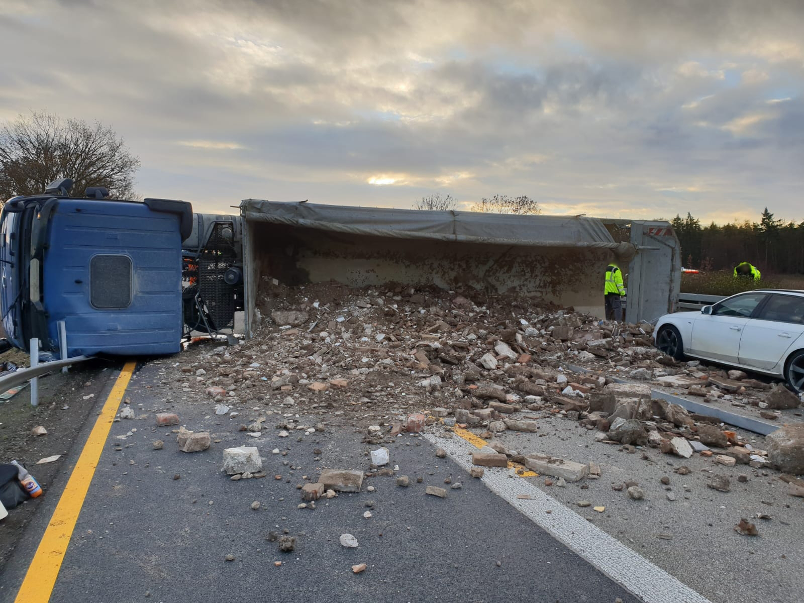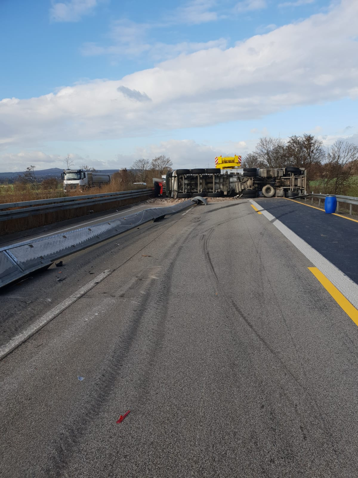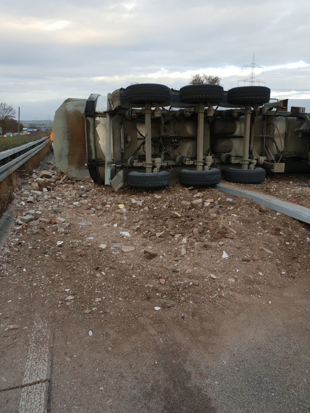 Am Dienstagmorgen ereignete sich auf der BAB45 zwischen dem Gambacher Kreuz und dem Gießener Südkreuz ein LKW Unfall. Ein mit Bauschutt beladener Lastwagen kippte aus ungeklärter Ursache in einer Baustelle um und kam seitlich zum Liegen. Sowohl das Fahrzeug als auch die verlorene Ladung blockierte die Autobahn in diesem Abschnitt und der Verkehr kam zum Erliegen. Glücklicherweise wurde bei diesem Unfall niemand verletzt.