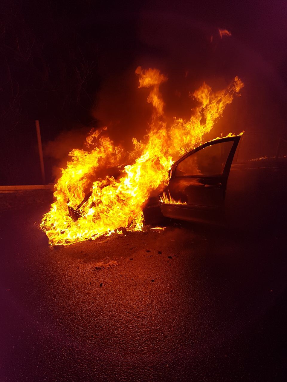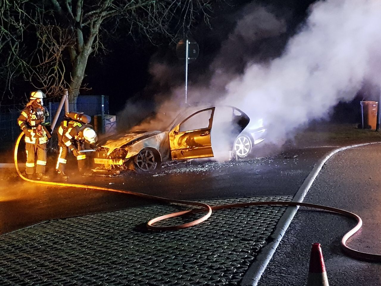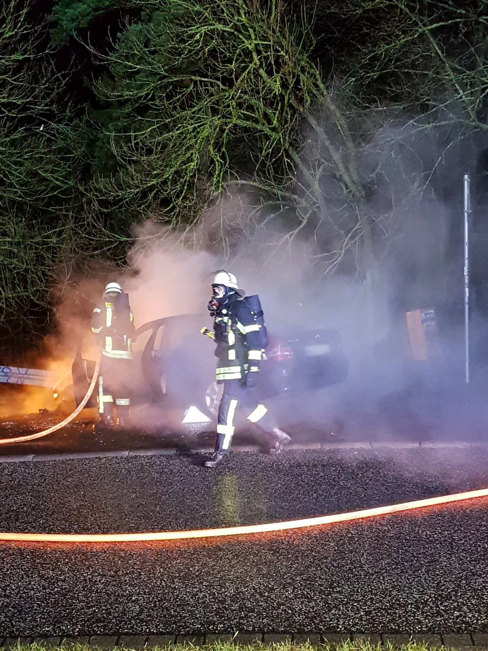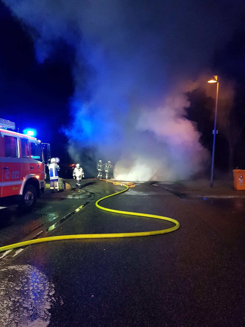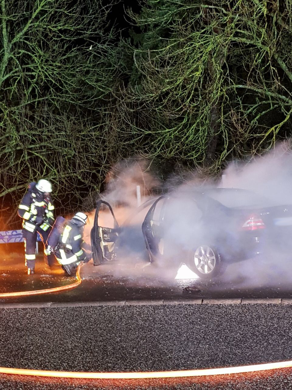 Als die Butzbacher Wehrleute eintrafen, stand der PKW im Vollbrand.