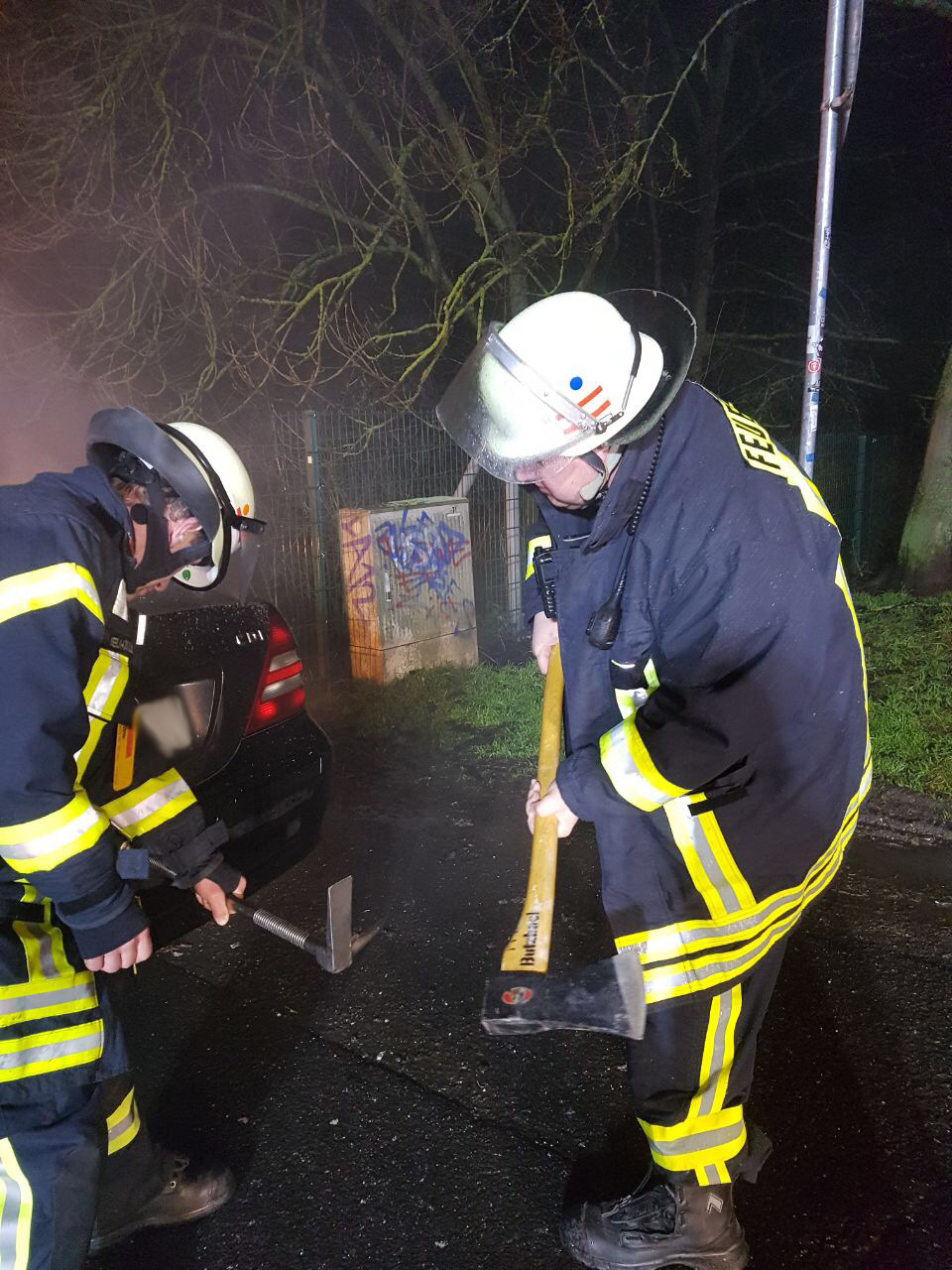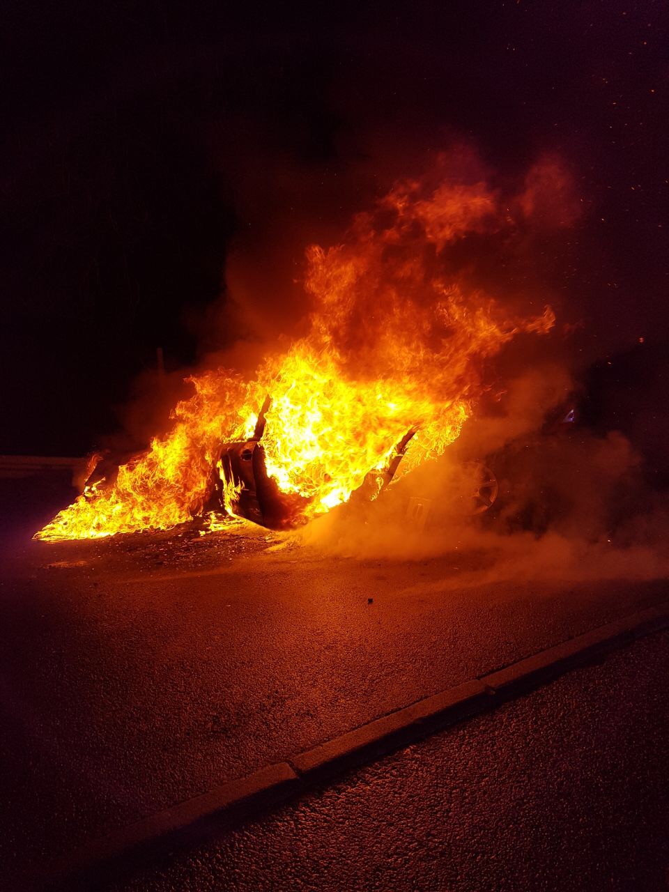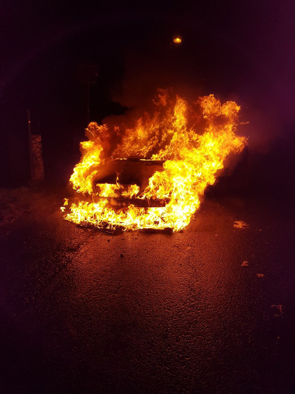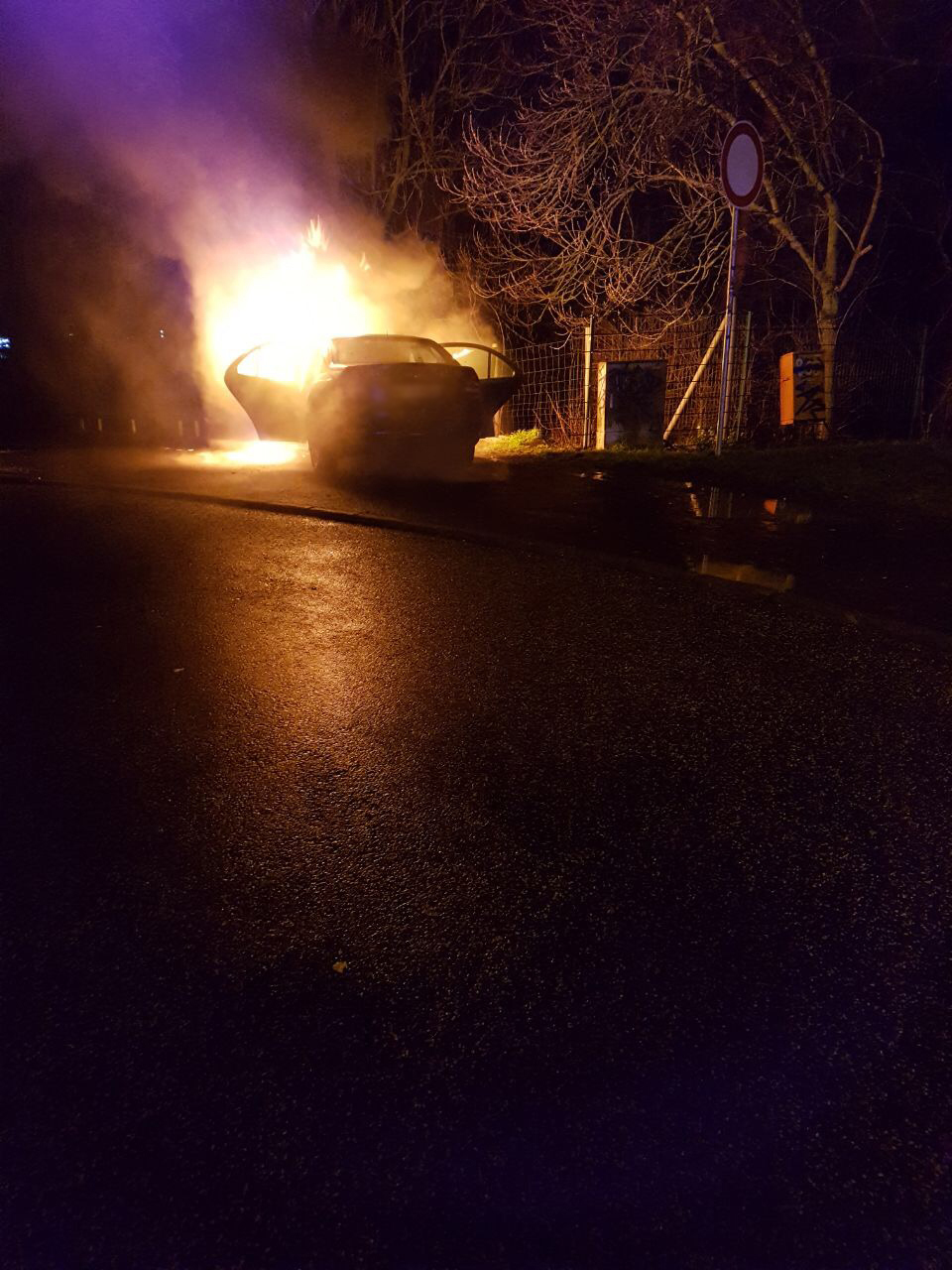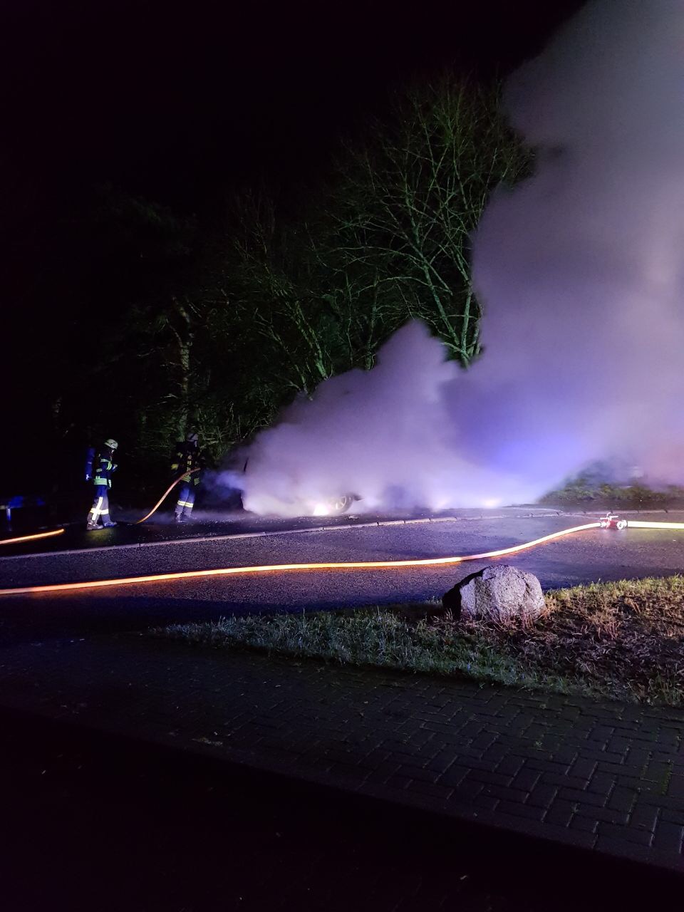 Als die Butzbacher Wehrleute eintrafen, stand der PKW im Vollbrand.