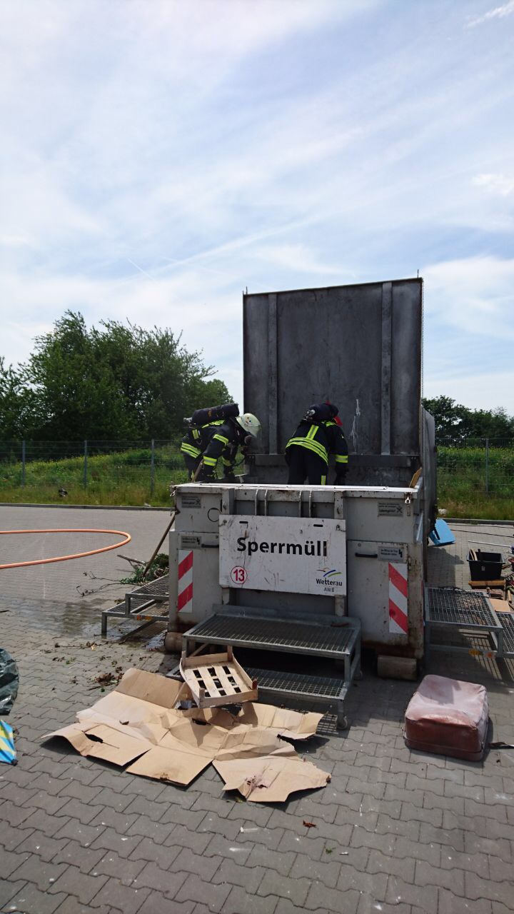Gegen 12:00 Uhr wurden die Brandschützer der Kernstadtwehr in den städtischen Recyclinghof alarmiert. Hier war die Sperrmüllpresse in Brand geraten.