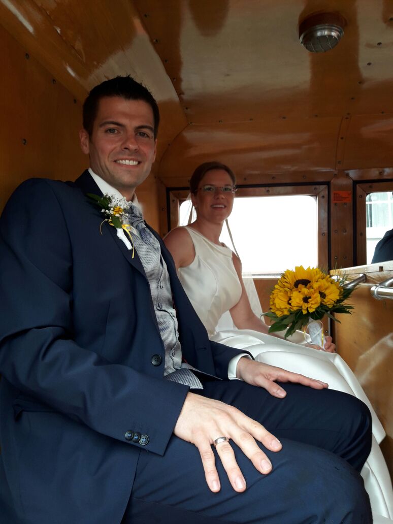 Am vergangenen Samstag hatte der Oldtimer „Hansemil“ die schöne Aufgabe, das Brautpaar Rüdiger und Brigitte Mestel an der Komturkirche in Nieder Weisel abzuholen und bis ins Schloss zu fahren, wo das Brautpaar mit Familien und Freunden feierte.