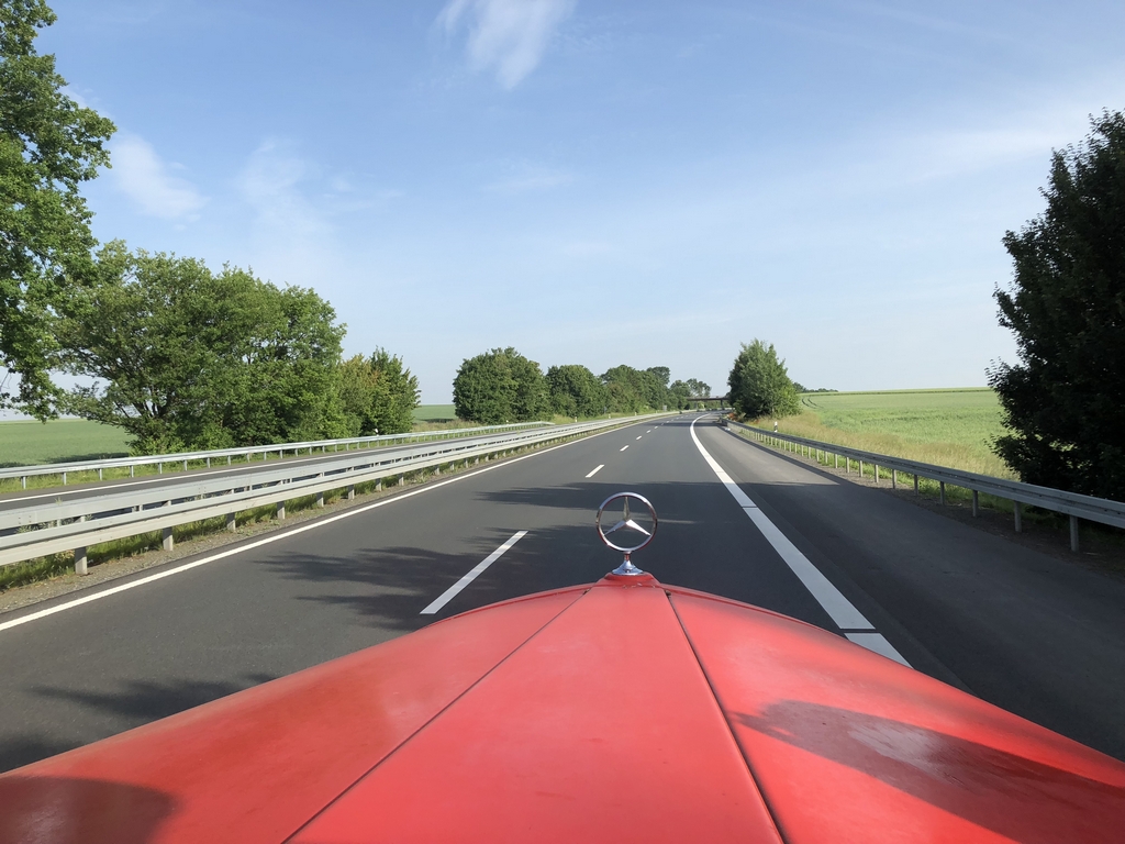Am Treffpunkt, einem großen Firmenparkplatz, stand bereits eine große Anzahl von Oldtimern, insgesamt sollten es an diesem Tage 51 werden. Was für ein Anblick- durchweg liebevoll gepflegte und in Schuss gehaltene Fahrzeuge, allesamt fahr- und die meisten sogar noch einsatzfähig (wie unser „Hansemil“ übrigens auch!).