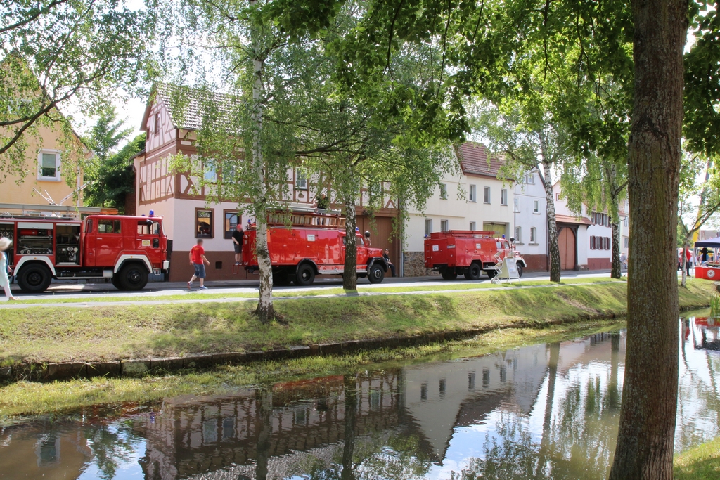 Rund um das Flüsschen „Bieber“ platzierten sich die Fahrzeuge, bereit sich der Bevölkerung zu präsentieren. Diese ließ sich nicht lumpen und kam zahlreich, um sich zum einen die Fahrzeuge anzuschauen, aber auch um sich die Würstchen und Co bei einem kalten Getränk schmecken zu lassen.