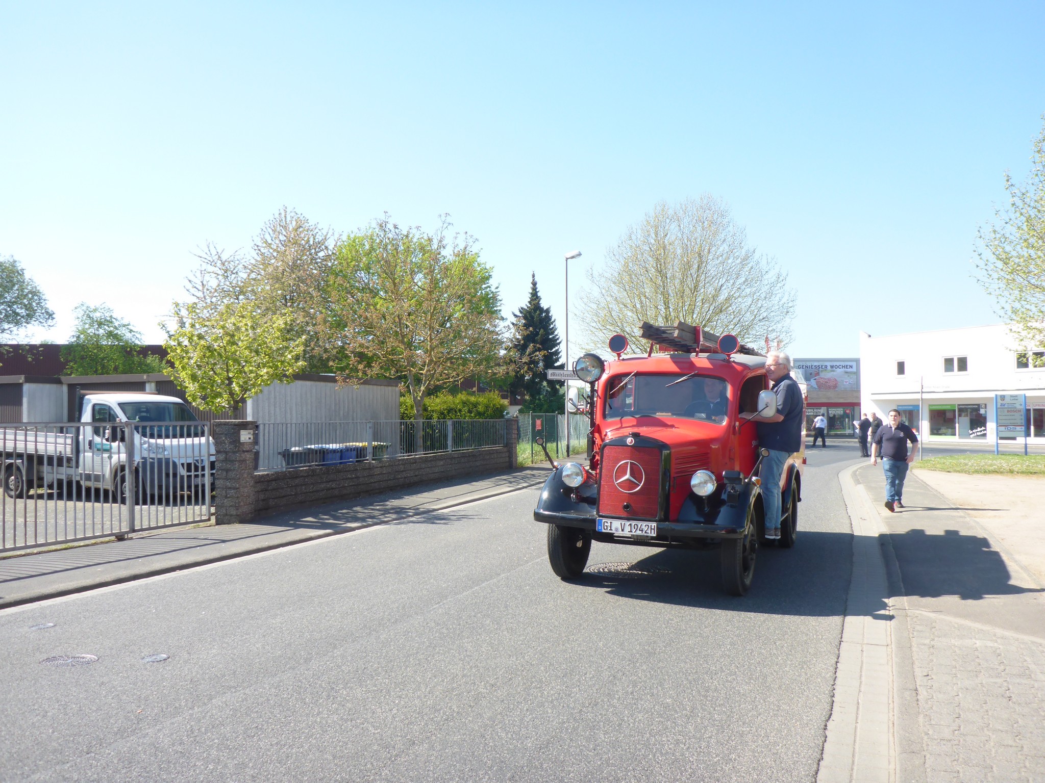 Los ging es mit einem Oldie- Korso durch Lollar zum Feuerwehrgerätehaus. Dort wurde jedes Fahrzeug dem zahlreichen Publikum vorgestellt, indem man die wichtigsten Fahrzeugdaten und Heimatwehr erklärte.