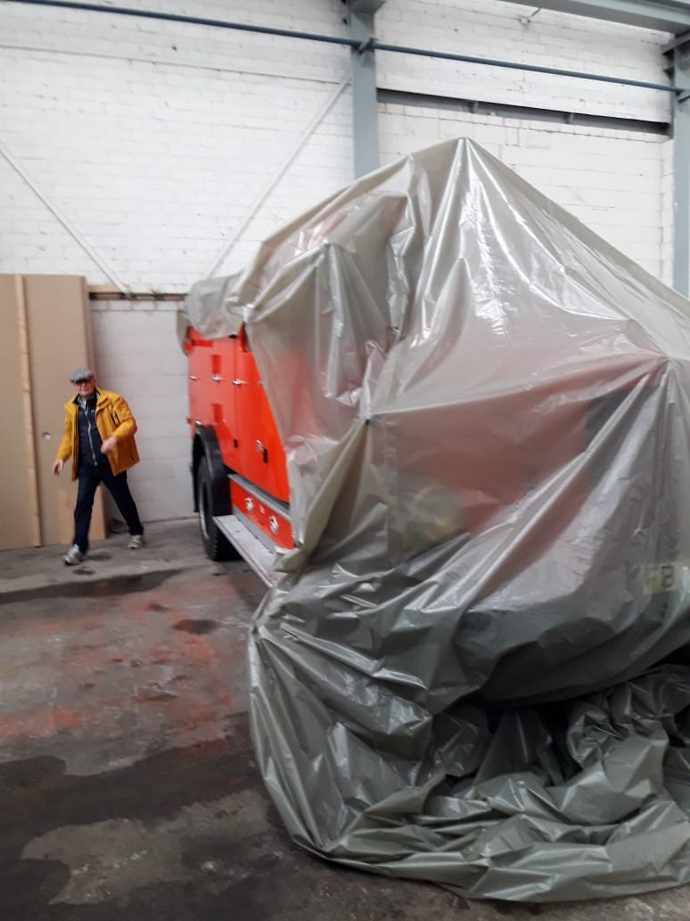 Zunächst in einer Halle des städtischen Bauhofs untergestellt, musste das Fahrzeug aufgrund des benötigten Platzes durch den Bauhof, zeitnah eine neue Bleibe suchen.