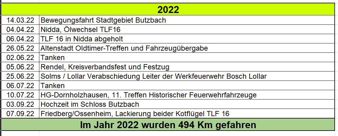 15.05.2022 Herzlichen Glückwunsch, „Finanzministerin“ 26.05.2022 Wieder on tour – in Altenstadt 05.06.2022 Kreisverbandsfest in Rendel 25.06.2022 Überraschung zum Ruhestand 10.07.2022 Hansemil in HG-Dornholzhausen 03.09.2022 Großaufgebot überraschte 20.11.2022 Abschlusstreffen im Feuerwehrmuseum Fulda