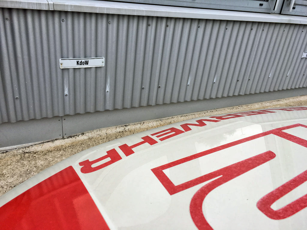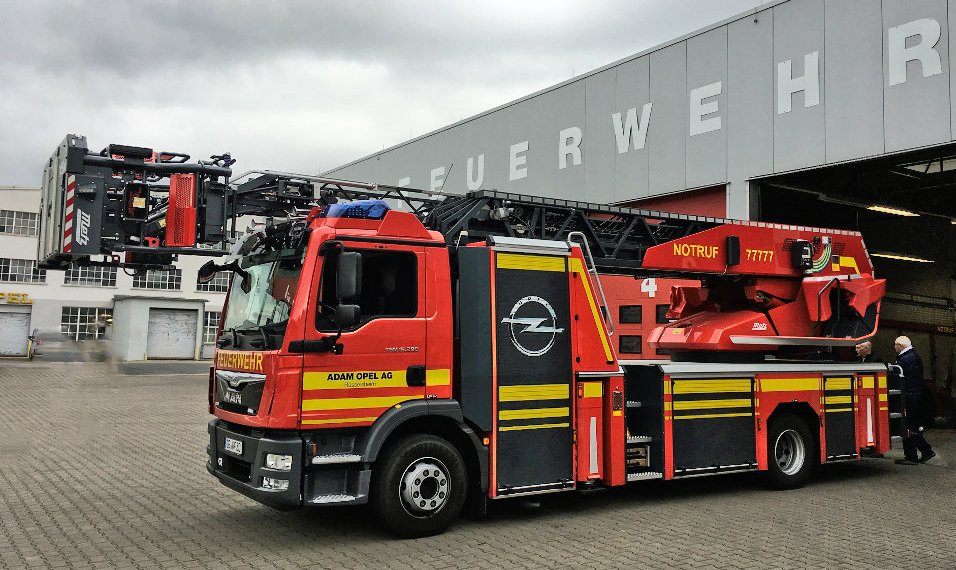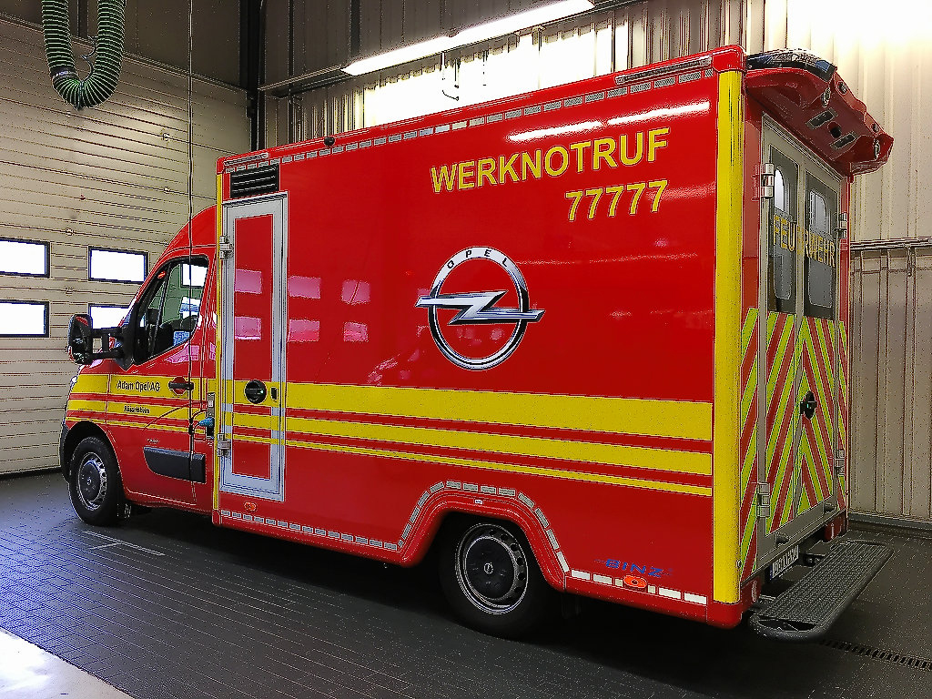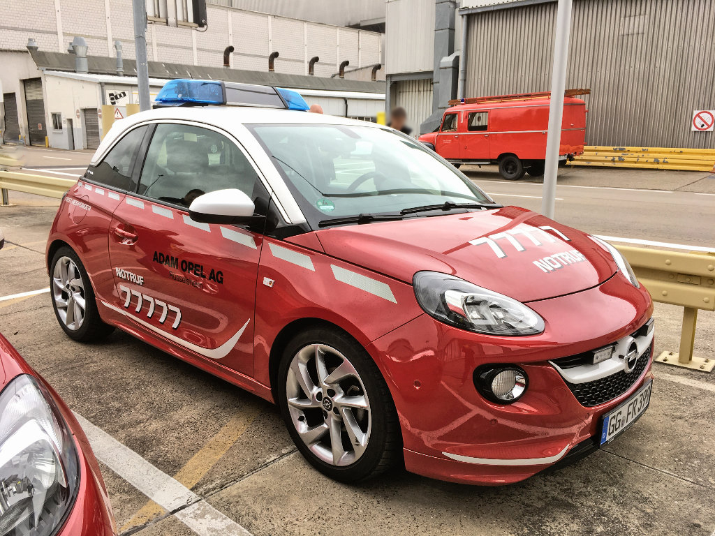 Nach der Besichtigung ging es im „MTF- Konvoi“ einmal über die Straße, ins gegenüberliegende Opel- Werk. Die dortige Werkfeuerwehr war das Ziel.